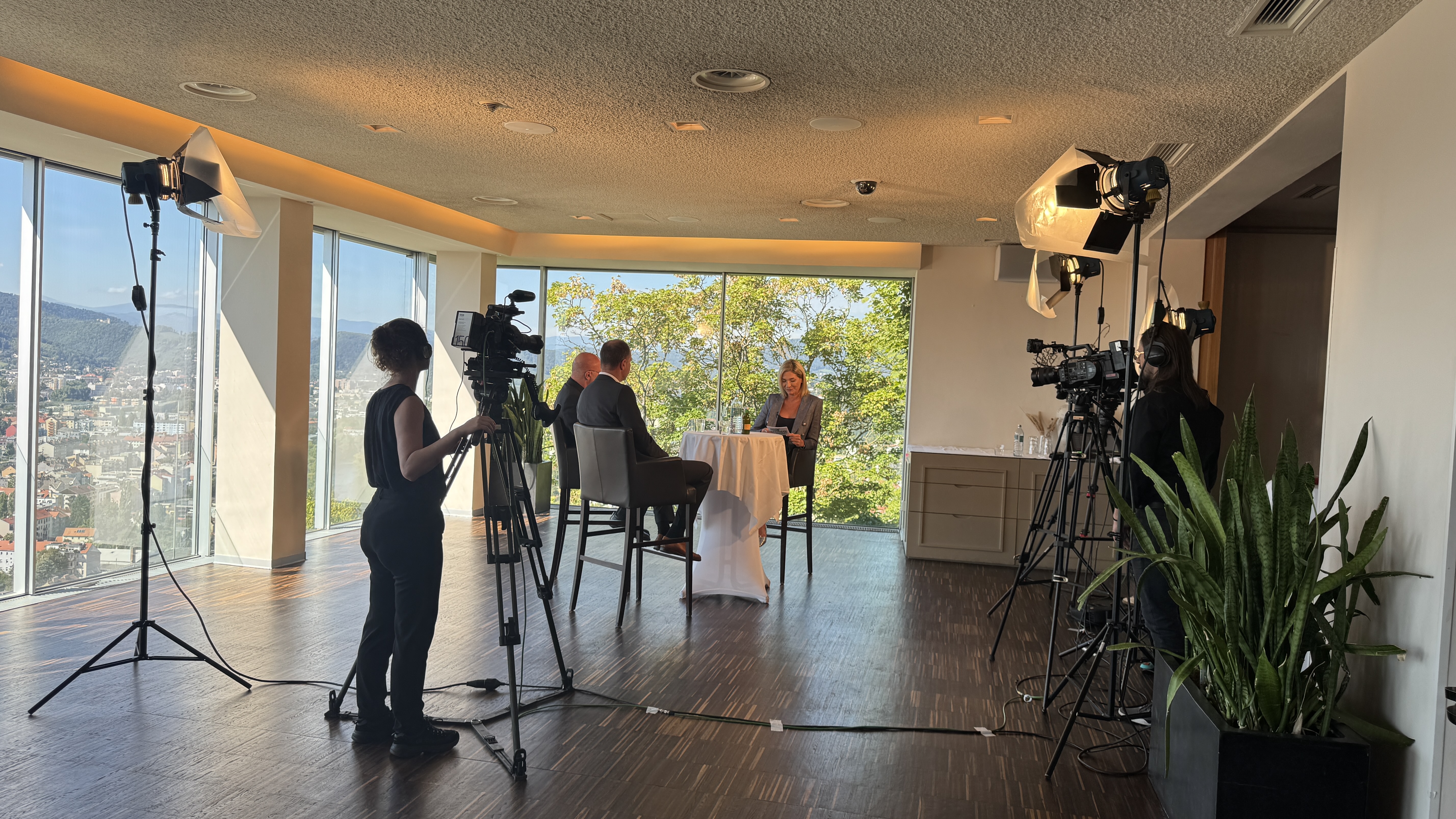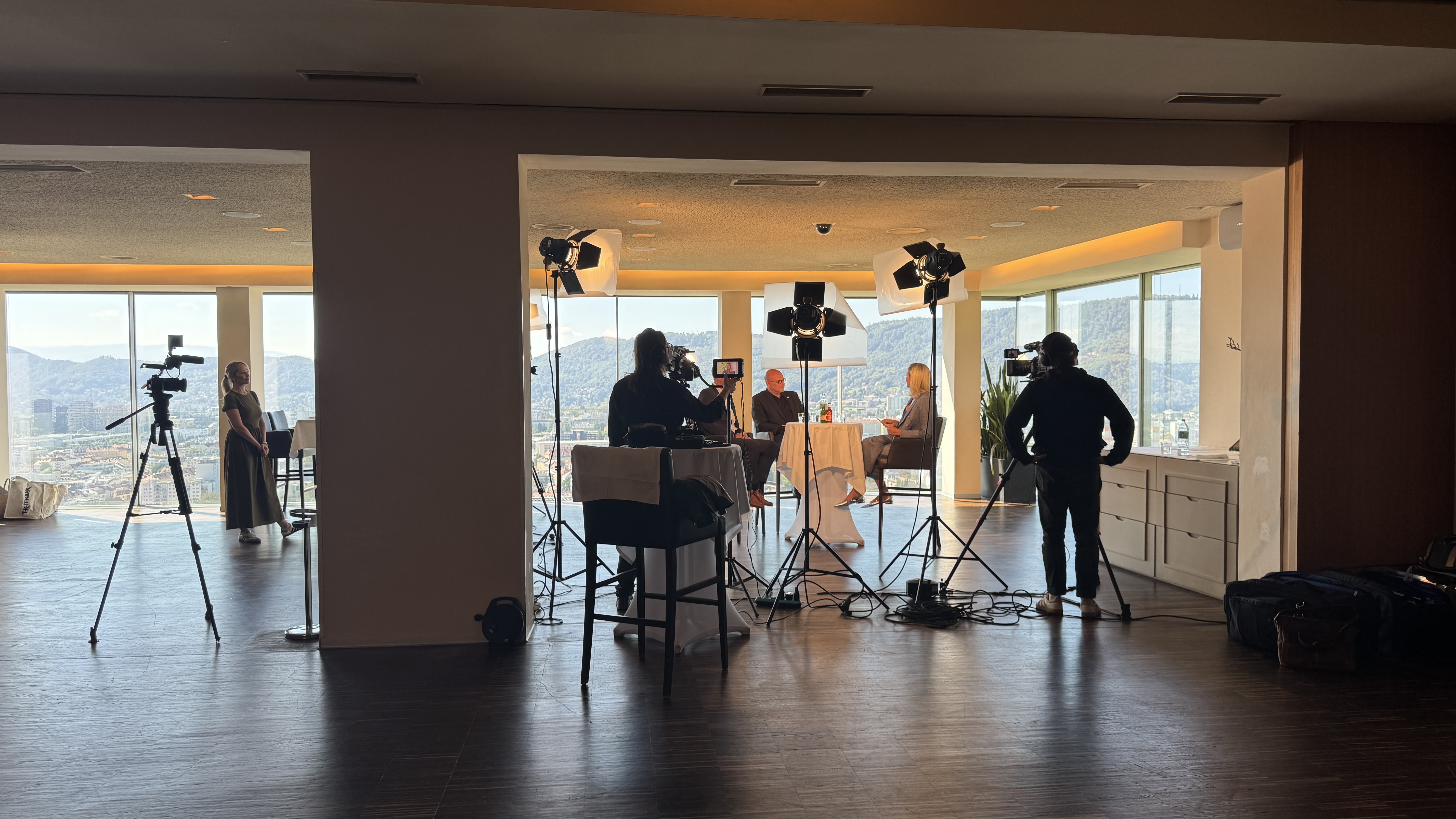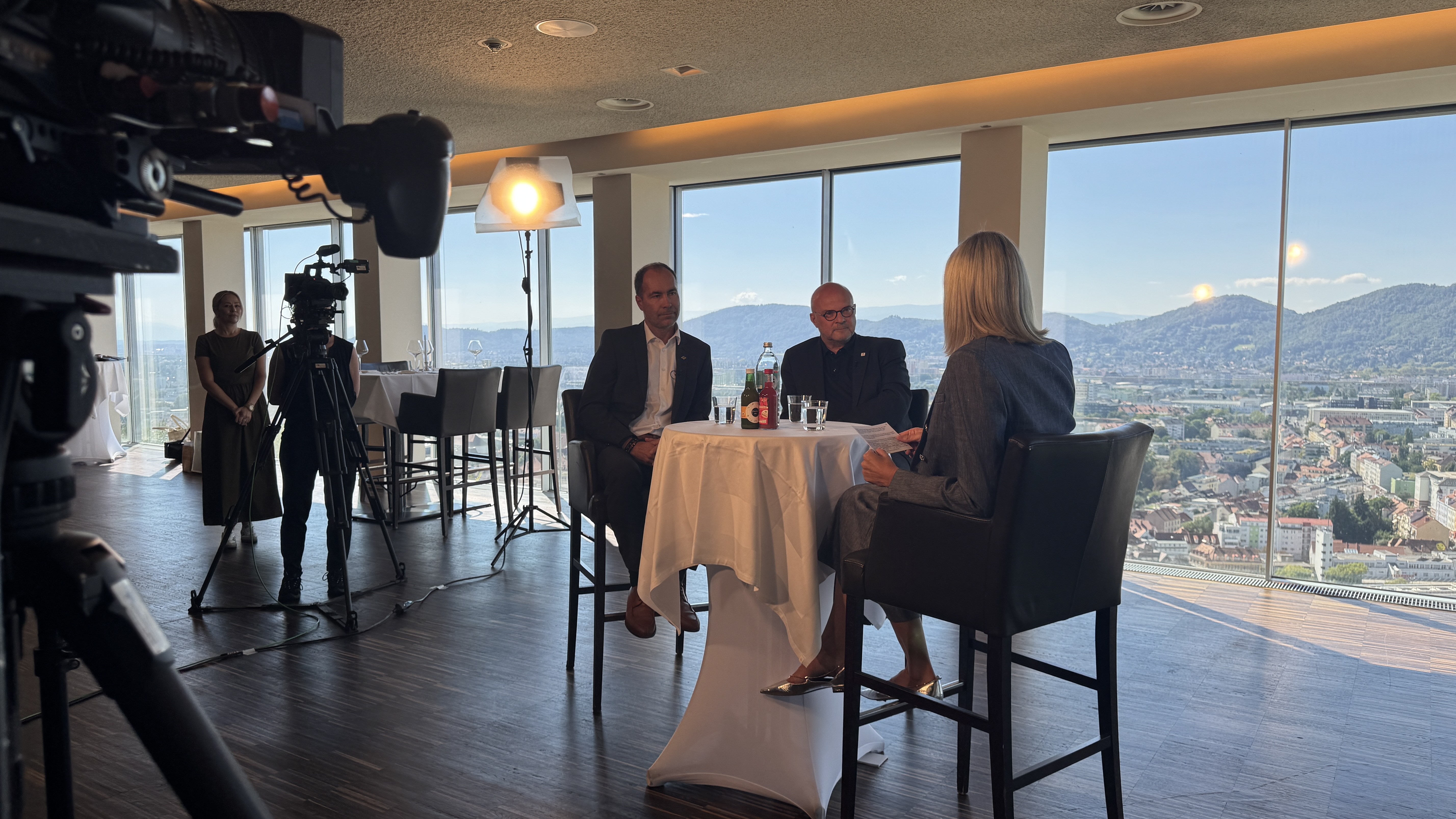 Exklusiv für STEIERMARK TV produzieren wir 14-tägig das Talk-Format "Schlossberg Gespräche". Aufgezeichnet wird die Sendung im Panoramasaal des Grazer Schlossberg Restaurants.